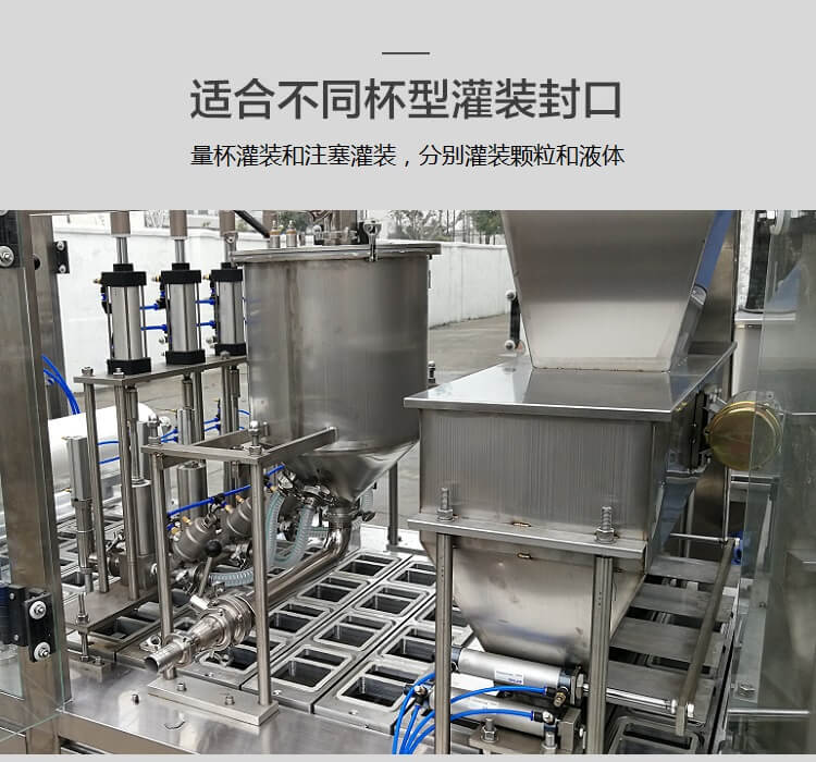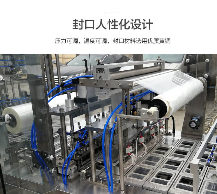 BHJ-4 全自動(dòng)托盒灌裝封口機(jī),根據(jù)客戶需求,特別設(shè)計(jì)兩種不同的灌裝方式:量杯灌裝和注塞灌裝,分別灌裝顆粒和液體。增加吹氣功能,并配有提升機(jī)和輸送帶。