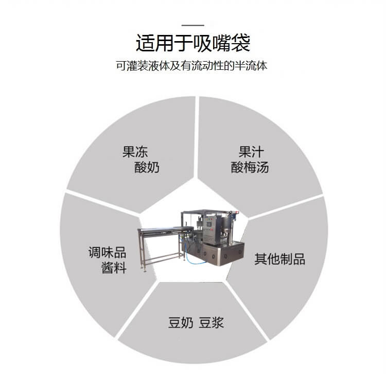 ZLD-3A 全自動(dòng)自立袋/吸嘴袋灌裝旋蓋機(jī),自動(dòng)上袋-自動(dòng)灌裝-清洗袋嘴-自動(dòng)理蓋落蓋-自動(dòng)旋蓋-自動(dòng)出成品,無(wú)袋不灌裝,無(wú)蓋報(bào)警,3000袋/小時(shí)。