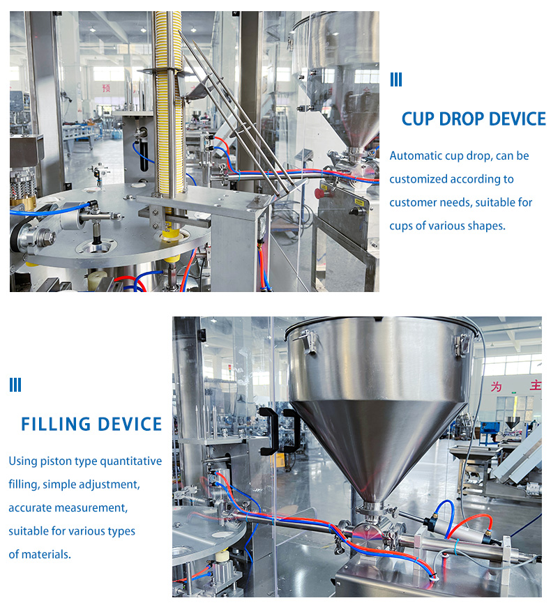 Automatic Jelly Yogurt Ice Cream Juice Sugar Honey Rotary Cup Discal Filling Capping Sealing Machine