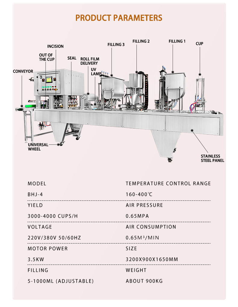 Continuous Type Jelly Pudding Plastic Cup Filling Sealing Machine