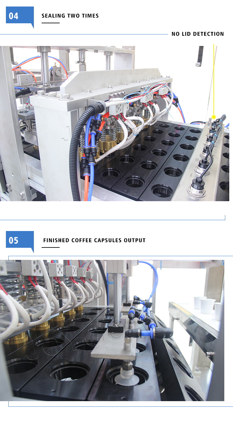 Little Dimensions, higher rate capability, complete capabilities and completely automatic, High precise engine powered by servo motor, PLC control and real-time tracking, Nitrogen system: flush capsule, No cup no filling without a sealing (continues generation no pause)We have empty coffee capsules, filter, and lid, coffee capsule filling sealing machine for K-CUP, Nespresso, Lavazza, Dolce Gusto, etc.