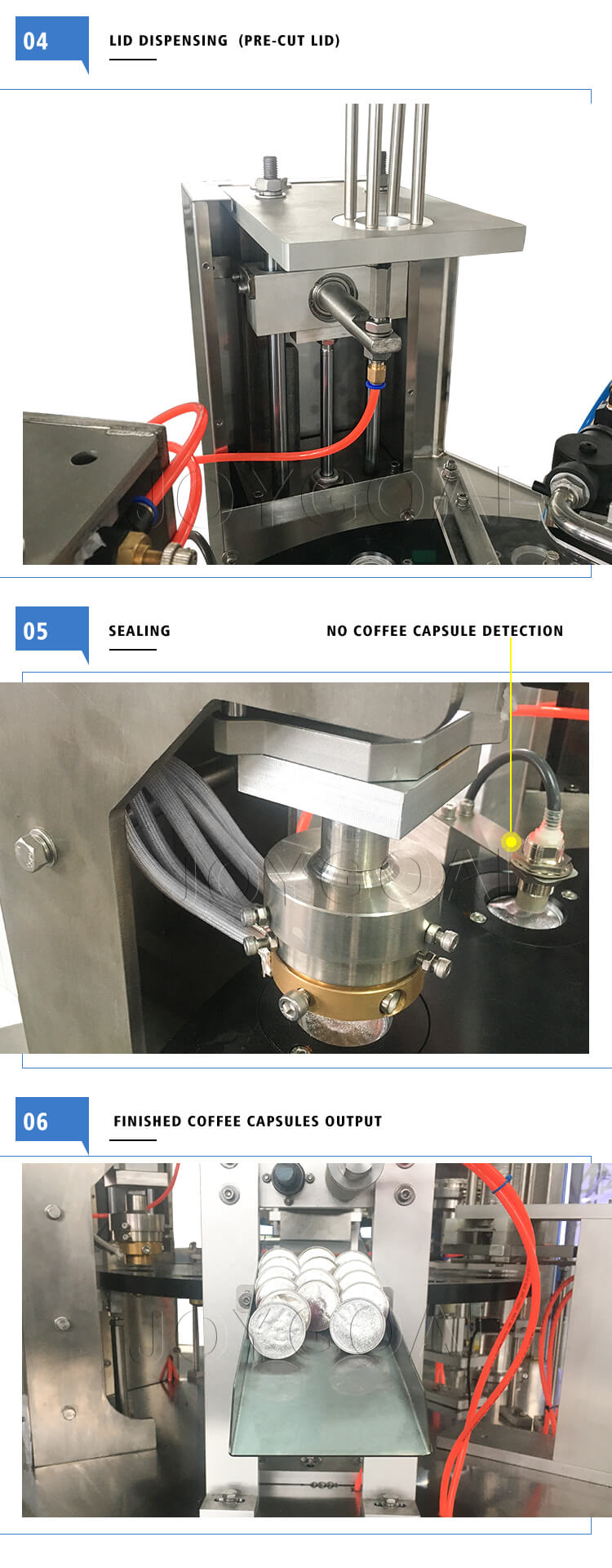Little Dimensions, higher rate capability, complete capabilities and completely automatic, High precise engine powered by servo motor, PLC control and real-time tracking, Nitrogen system: flush capsule, No cup no filling without a sealing (continues generation no pause)We have empty coffee capsules, filter, and lid, coffee capsule filling sealing machine for K-CUP, Nespresso, Lavazza, Dolce Gusto, etc.