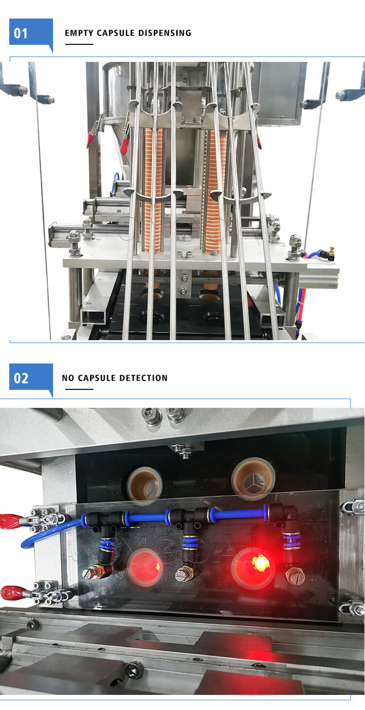 Little Dimensions, higher rate capability, complete capabilities and completely automatic, High precise engine powered by servo motor, PLC control and real-time tracking, Nitrogen system: flush capsule, No cup no filling without a sealing (continues generation no pause)We have empty coffee capsules, filter, and lid, coffee capsule filling sealing machine for K-CUP, Nespresso, Lavazza, Dolce Gusto, etc.