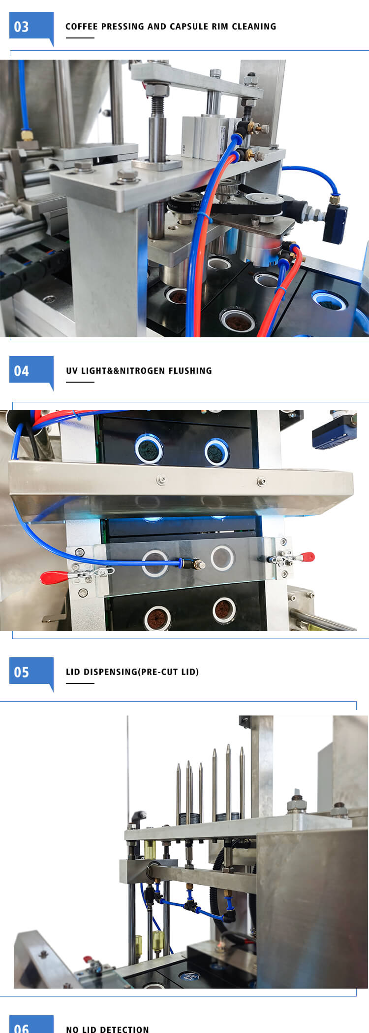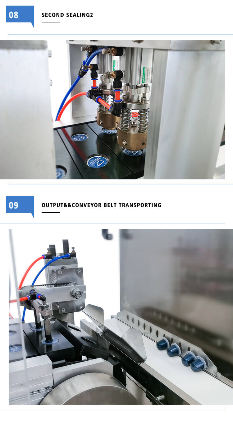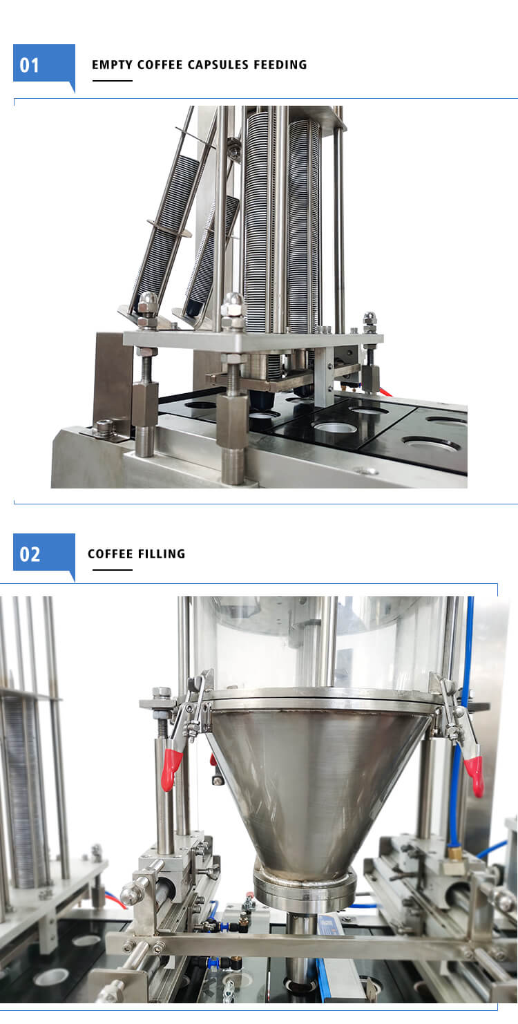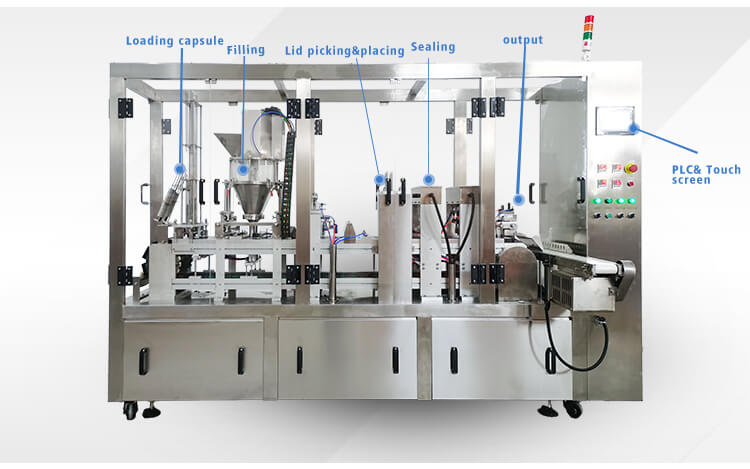 Little Dimensions, higher rate capability, complete capabilities and completely automatic, High precise engine powered by servo motor, PLC control and real-time tracking, Nitrogen system: flush capsule, No cup no filling without a sealing (continues generation no pause)We have empty coffee capsules, filter, and lid, coffee capsule filling sealing machine for K-CUP, Nespresso, Lavazza, Dolce Gusto, etc.