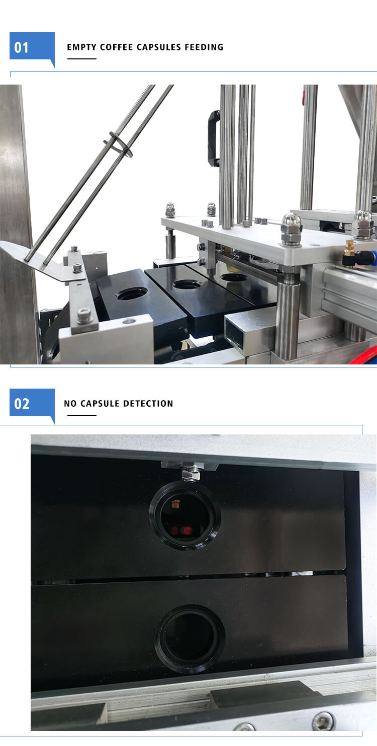 Little Dimensions, higher rate capability, complete capabilities and completely automatic, High precise engine powered by servo motor, PLC control and real-time tracking, Nitrogen system: flush capsule, No cup no filling without a sealing (continues generation no pause)We have empty coffee capsules, filter, and lid, coffee capsule filling sealing machine for K-CUP, Nespresso, Lavazza, Dolce Gusto, etc.
